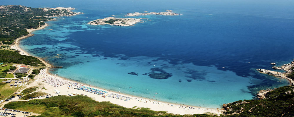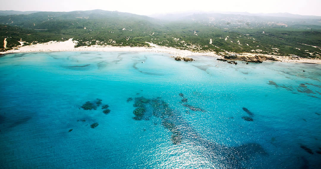 The beach of Rena Majore, the colors of the sea are lovely as always; the wide beach of fine white sand is reached through a pine forest.